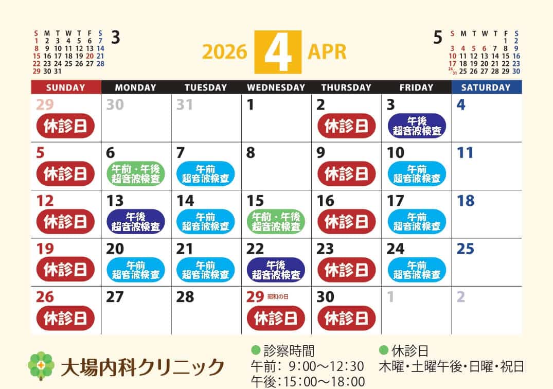 ●2026年4月の超音波検査予定●