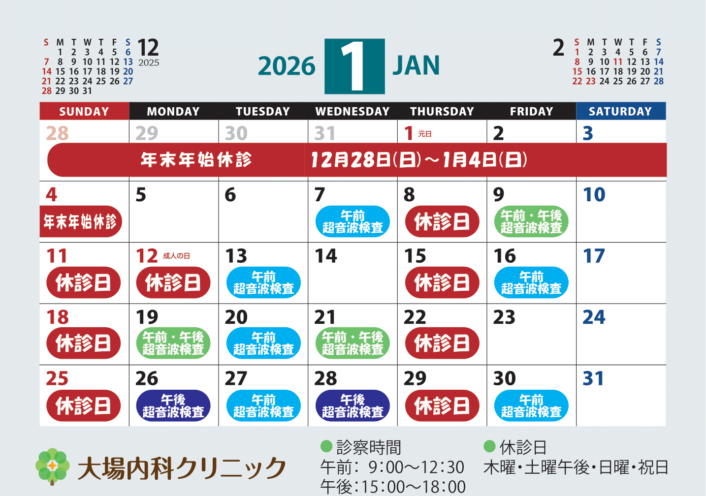 ●2026年1月の超音波検査予定●